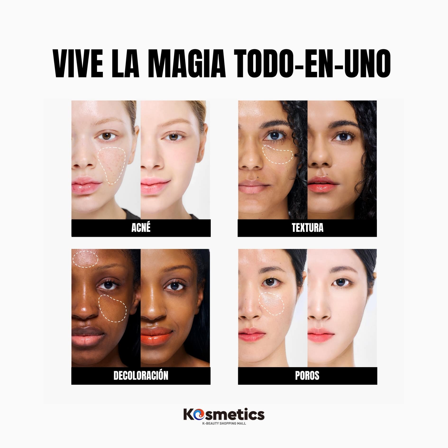 - Alta cobertura para ojeras, manchas y enrojecimientos.